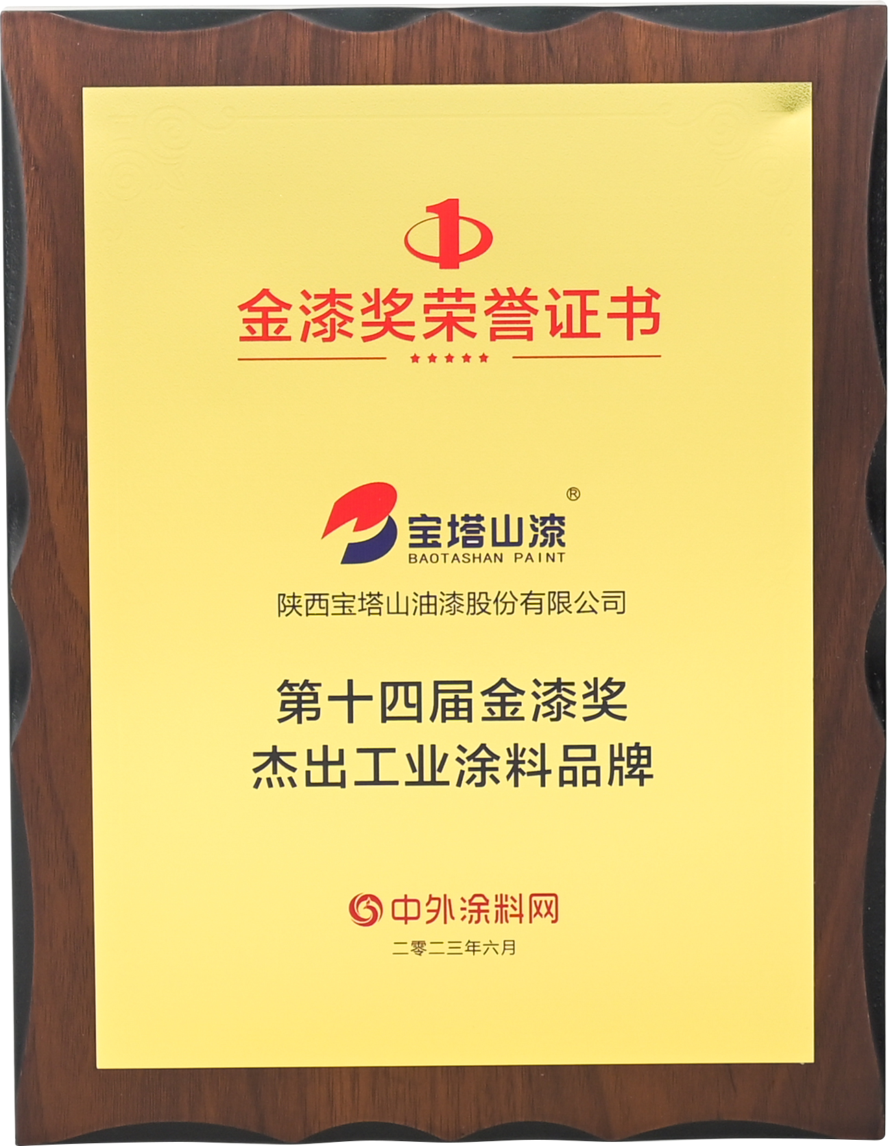 2023年6月,寶塔山漆榮獲“第十四屆金漆獎