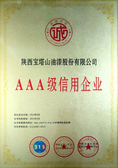 2019年4月寶塔山企業(yè)被評為“AAA級信用企業(yè)”