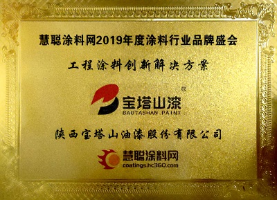 2019年寶塔山漆榮獲慧聰涂料網(wǎng)2019年度涂料行業(yè)品牌盛會“工程涂料創(chuàng)新解決方案獎”