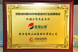 2020年7月,寶塔山漆榮獲第十六屆2020年度涂料行業(yè)影響力品牌頒獎盛典活動中榮獲”外墻涂裝杰出品牌“