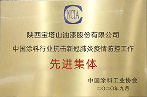 2020年9月,寶塔山漆獲評“中國涂料行業(yè)抗擊新冠肺炎疫情防控工作先進集體”