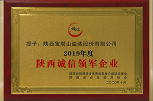 2020年10月,寶塔山漆獲評陜西省誠信領(lǐng)軍企業(yè)