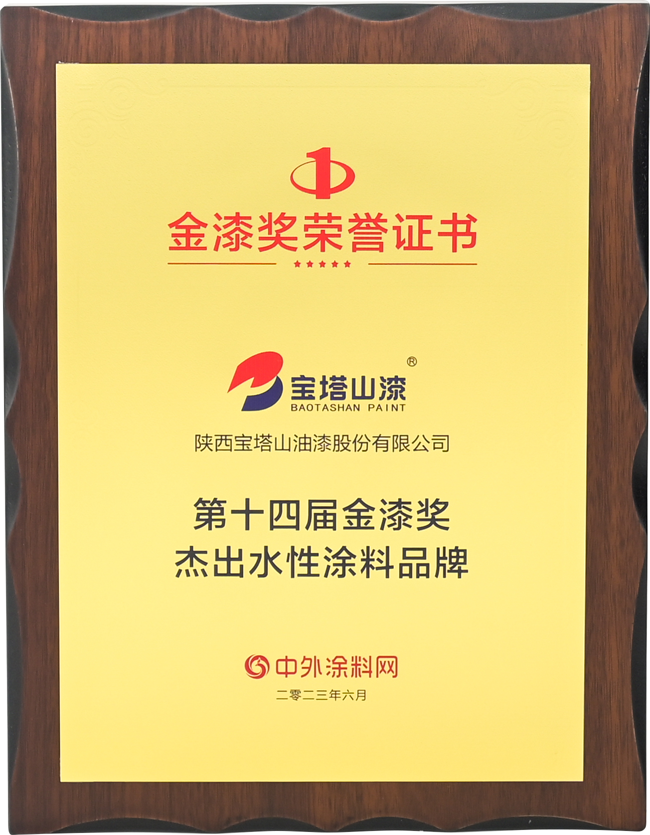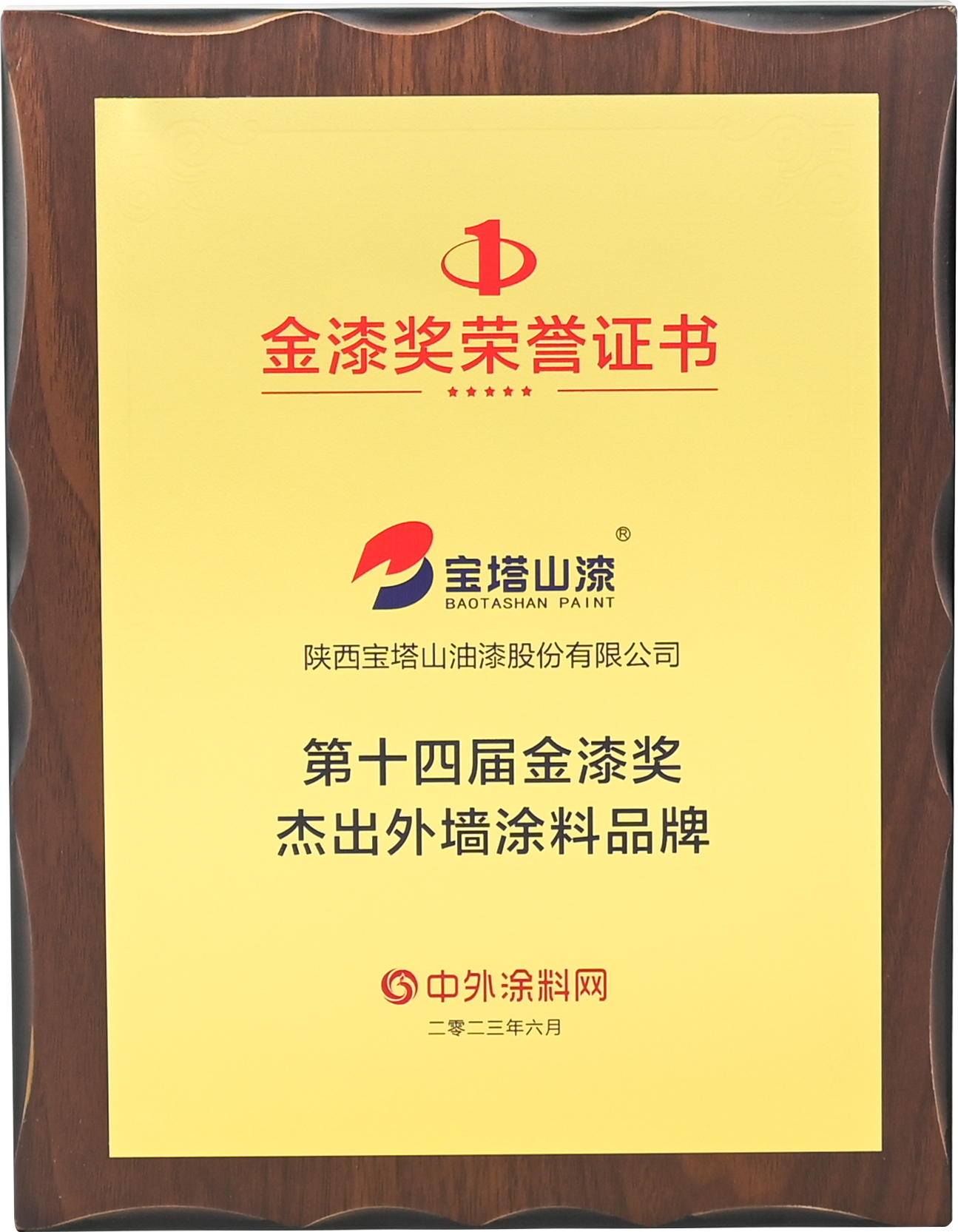 2023年6月,寶塔山漆榮獲“第十四屆金漆獎杰出外墻涂料品牌”。