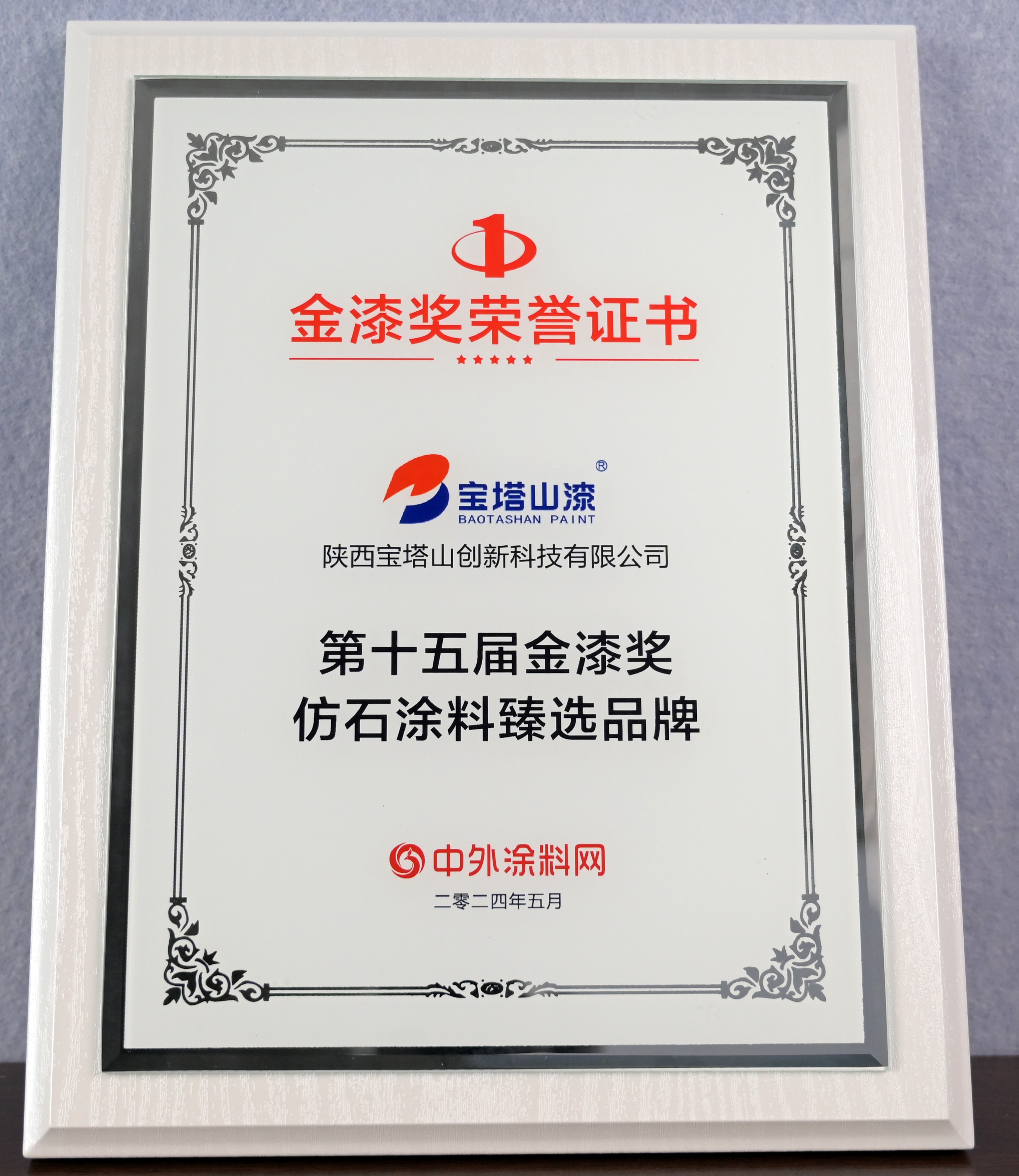 2024年5月,寶塔山漆榮獲“第十五屆金漆獎仿石涂料臻選品牌”。