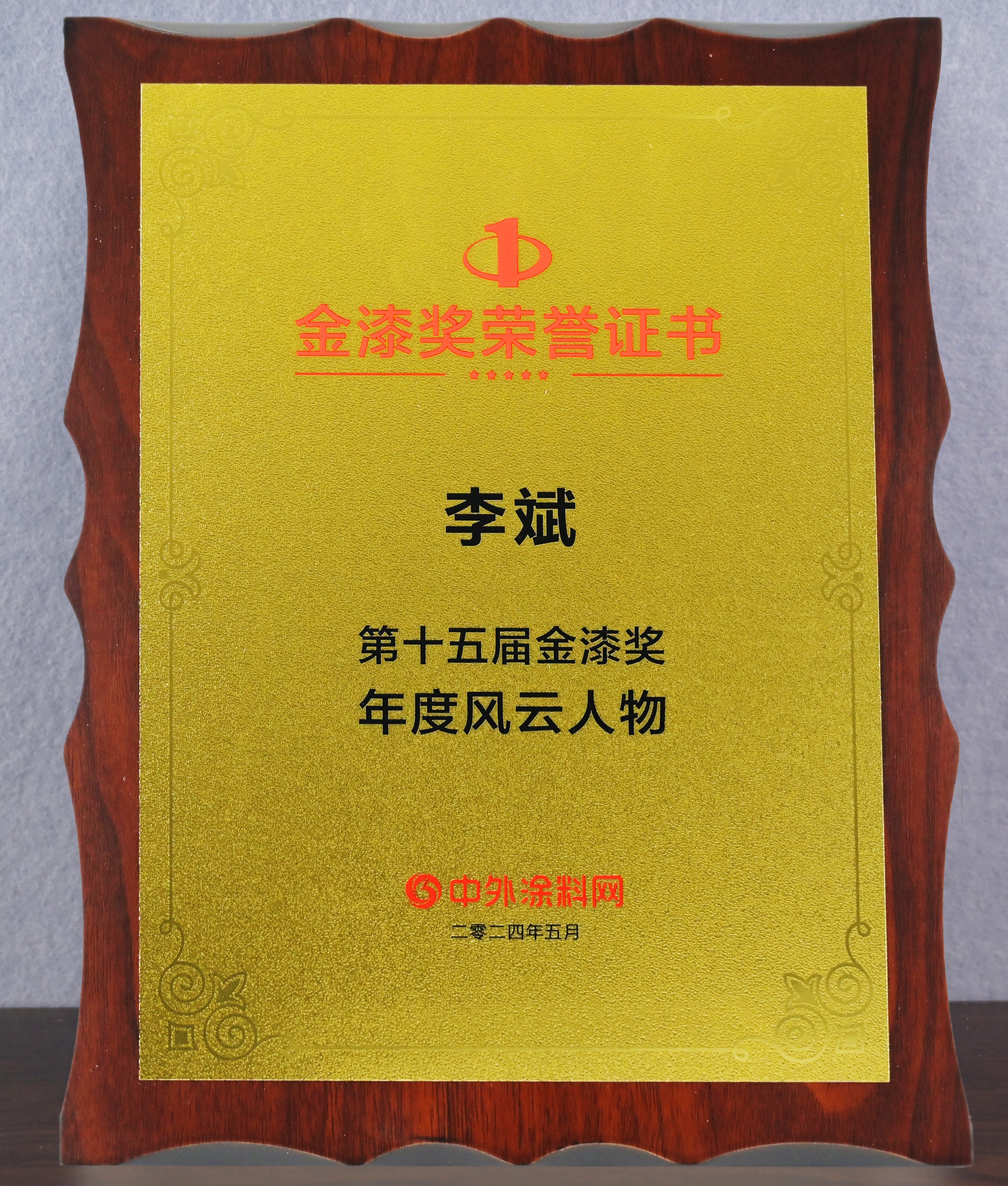 2024年5月,寶塔山漆李斌同志在中外涂料網(wǎng)第十五屆金漆獎評選活動中被評為“年度風(fēng)云人物”。